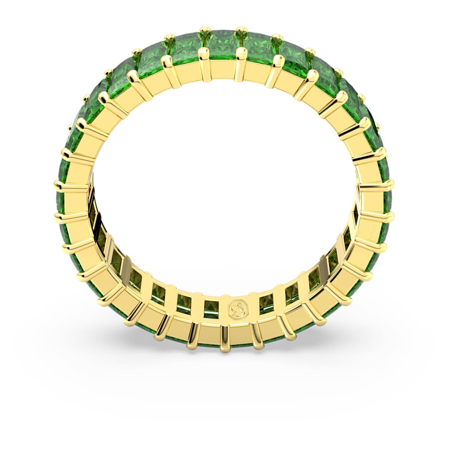 Crafted with a sleek circle of crystals, this Matrix ring will make a mesmerizing addition to your jewelry box. In a process that unites science and magic, deep green princess baguette-cut stones are set on a gold-tone plated band. This glowing accessory is perfect for stacking, allowing multiple combinations for all occasions.