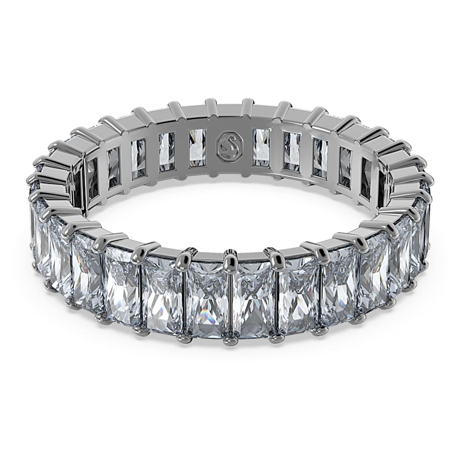 Combining a deep metallic look with eye-catching shine, this Matrix ring will make a versatile addition to your jewelry box. In a process that unites science and magic, grey princess baguette-cut stones are set on a ruthenium plated band. A captivating accessory that is perfect for stacking, allowing multiple combinations for all occasions.