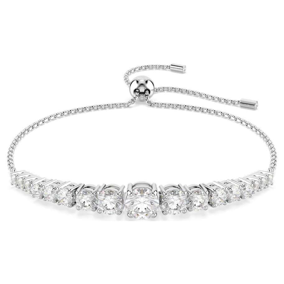 This radiant Matrix Tennis bracelet is a perfect way to let your personal style shine. Worn on a delicate chain with a sliding ball closure, the rhodium plated design is adorned in a gradient of round-cut Swarovski Zirconia, each faceted for light-reflecting wonder. Enhance the look of luxury by pairing the jewelry with a set of matching earrings or a necklace.