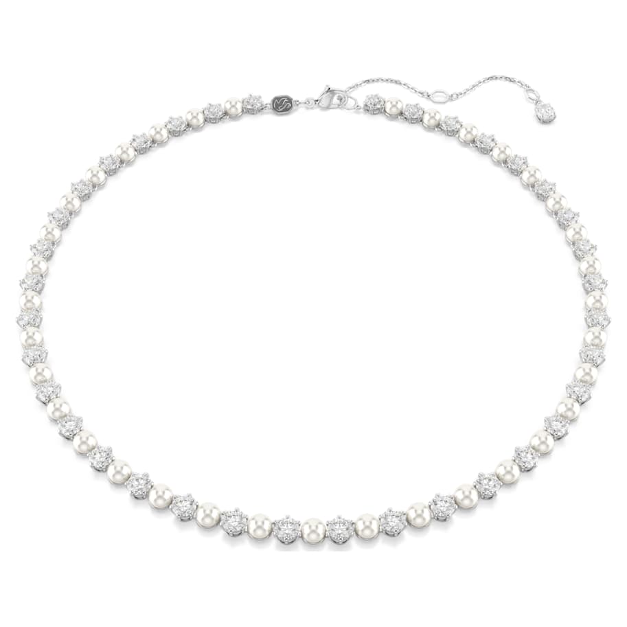For a true expression of elegance, this Matrix necklace is an essential choice. The all-around design is rhodium plated and features alternating Swarovski Zirconia and small Swarovski Crystal Pearls in a seamless and sophisticated row. An additional extender allows you to adjust the fit to your preferred size. It’s the ideal blend of modern and classic styles and gives you a go-to piece of jewelry whenever refinement is called for.