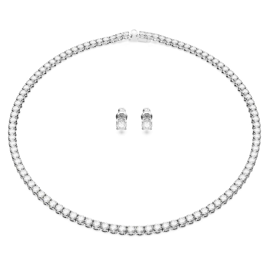 This perfectly matched set ensures that your overall look is expressed in total harmony. It includes an all-round necklace, featuring a string of shimmering clear stones and a refined closure, as well as a pair of delicate stud earrings. For an everyday combination or a simple touch of beauty on a night out, this is an assured choice.