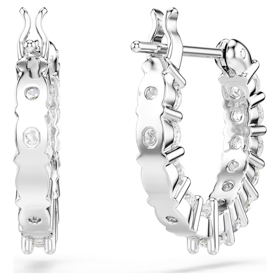 This pair of pierced earrings by Swarovski is a delightful, timeless piece of jewelry. Both hoop earrings are set with numerous sparkling white stones that enhance their attractive look with subtle glimmer. Best worn with matching necklaces and bracelets, these earrings are a delightful gift for casual occasions.