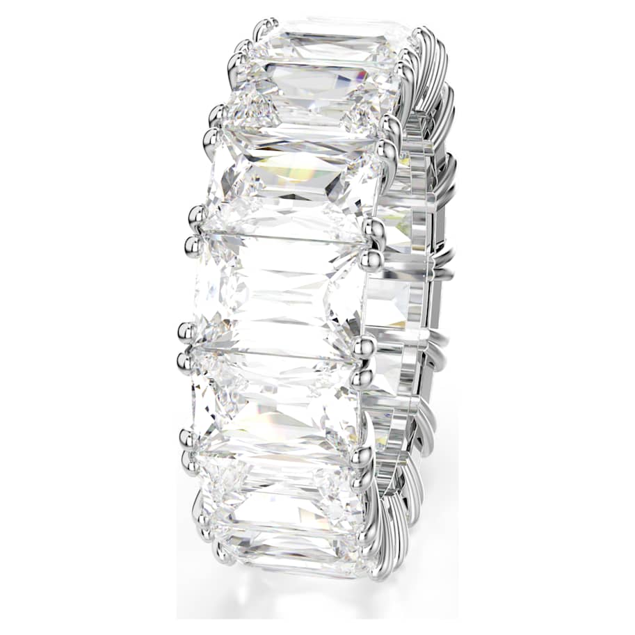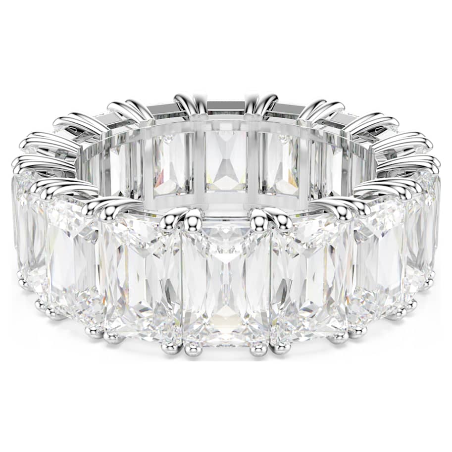 A striking, elegant look distinguishes this Swarovski ring. A row of gleaming white stones, cut into a faceted, rectangular shape, lends it an air of refined simplicity. The unbroken line of sparkling stones defines the character of the design and matches well with equally elegant pieces of jewelry, especially other rings to create an attractive and on-trend stacking look. A great match for special occasions, and an inspired gift giving idea.