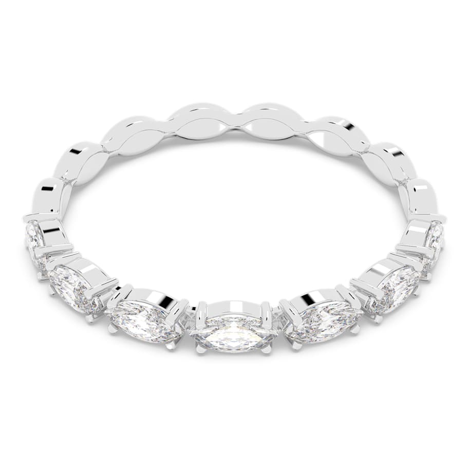 Balance minimalism and luxury with this gorgeous ring. The front half is embellished with sparkling marquise-shaped stones, making this rhodium-plated accessory a lovely accent for everyday looks. Stacks beautifully or looks equally good worn alone.