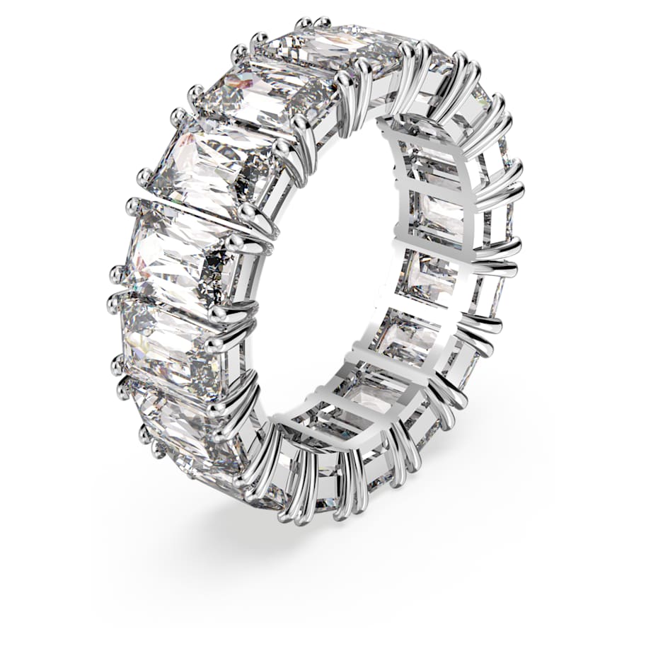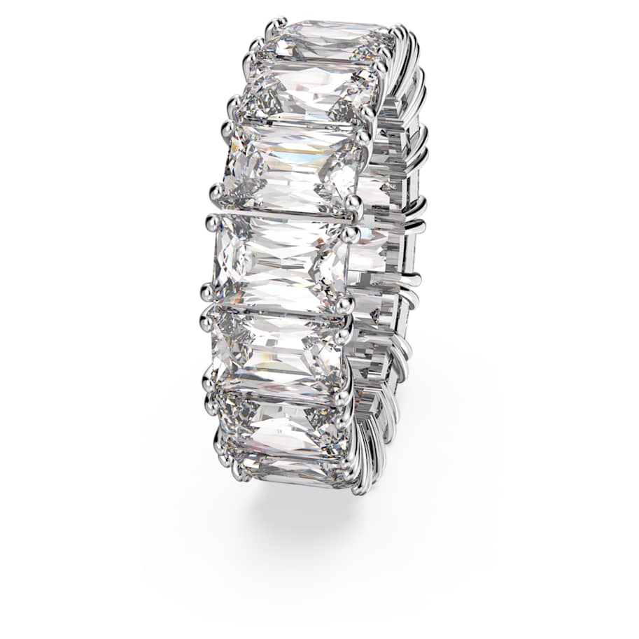 A striking, elegant look distinguishes this Swarovski ring. A row of gleaming white stones, cut into a faceted, rectangular shape, lends it an air of refined simplicity. The unbroken line of sparkling stones defines the character of the design and matches well with equally elegant pieces of jewelry, especially other rings to create an attractive and on-trend stacking look. A great match for special occasions, and an inspired gift giving idea.