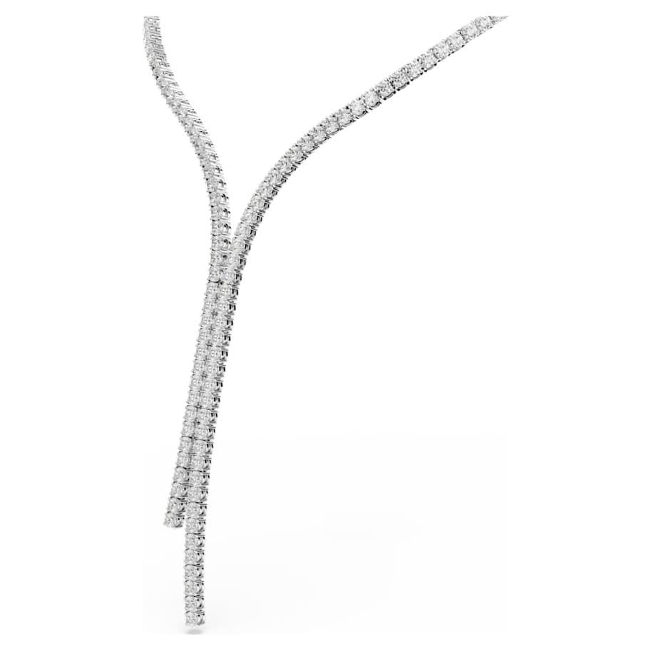Swarovski’s signature Matrix style is elevated to the max in this glittering Y necklace. Crafted with a lobster closure, the rhodium plated design wraps around the neck with a dramatic strand of round-cut Swarovski Zirconia, each presented in a clear tone and placed in a prong setting. It’s a standout piece of jewelry for intense radiance that will add the ultimate finishing touch to any outfit.