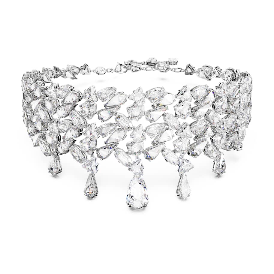 This dramatic Mesmera choker was created for iconic evening style. The light-catching design is made with a cluster of crystals in a surprising mix of cuts and sizes, and for extra luxury the integrated elongation is crafted with a scattering of stones. A striking gift for someone who loves to stand out.