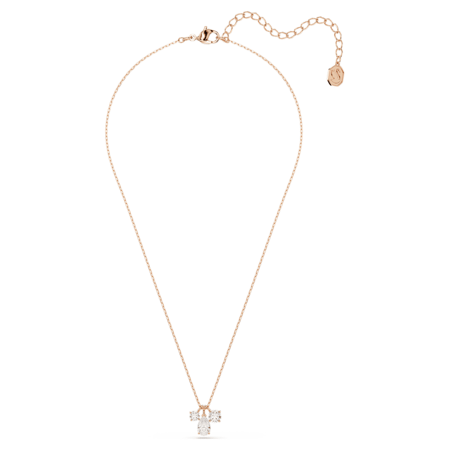 For an expression of artful craftsmanship, this Mesmera pendant is adorned with three shimmering Swarovski Zirconia, including a central, pear-shaped stone complemented by two smaller round stones on either side. Delicate facets create a refined yet simple look, perfect for embellishing everyday outfits with light. This rose gold-tone plated pendant is suspended from a delicate chain and is a great match with similar pieces from the same family.