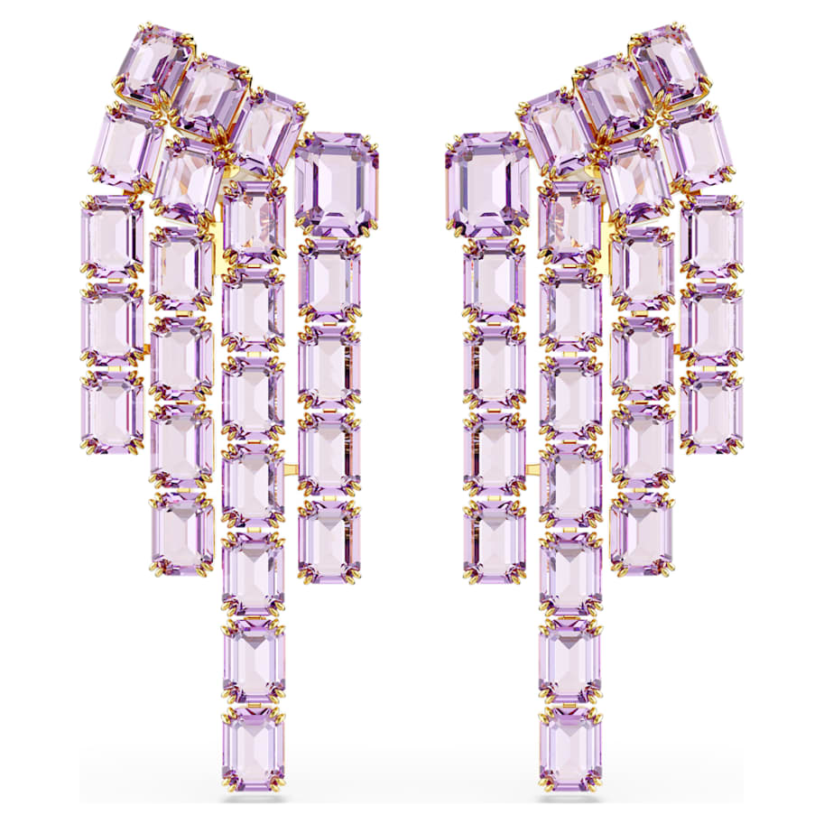 Embrace the chandelier-chic style of these vibrant clip earrings. Each piece is gold-tone plated and brought to life with cascading strands of octagon-cut crystals in a purple shade. Dramatic and striking, they’ll add a showstopping touch to your outfit at any time of day or night.