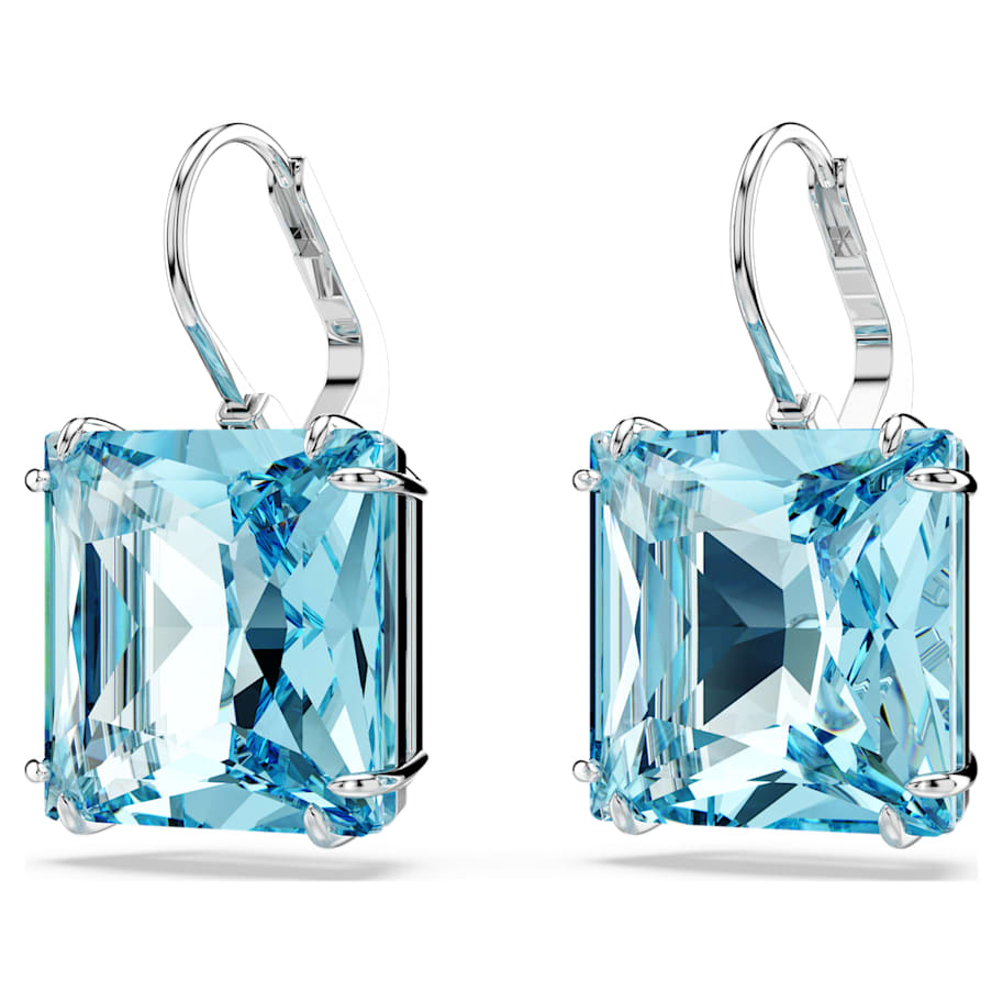Bold yet refined, these pierced earrings are a timeless everyday choice. Featuring square cut crystals in a calming blue hue, this pair is finished with a sleek rhodium plated setting. Style yours with denim or sharp tailoring – with this versatile design, anything goes. These earrings are part of the Millenia Family, designed for Collection III.