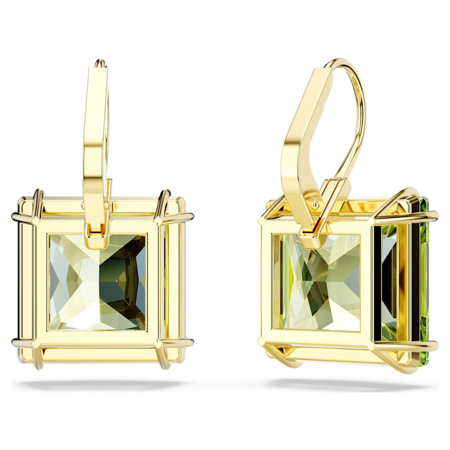 Elegant yet eye-catching, these statement earrings are set to become your new favorite. Designed with square-cut crystals in a vibrant green hue, this pair is finished with a refined gold-tone plated setting. Style yours with other pieces from the Millenia family for maximum impact. These earrings are part of the Millenia Family, designed for Collection III.
