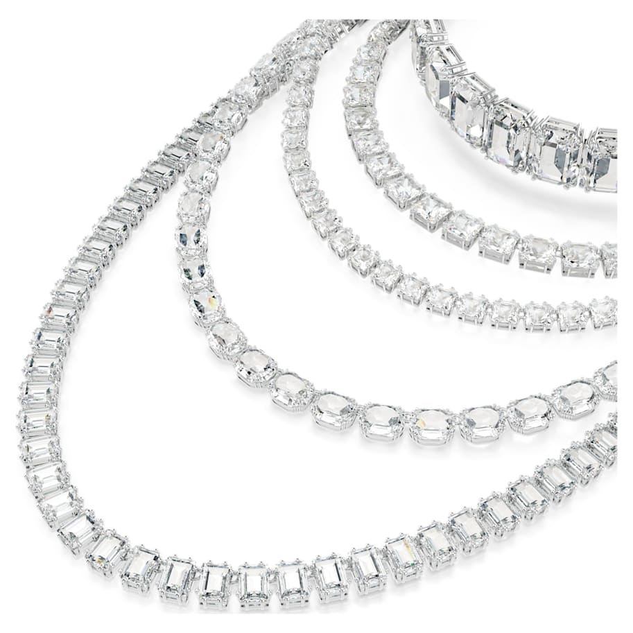 This statement necklace is a sublime example of Swarovski’s finest savoir-faire. The rhodium plated design features five rows of clear crystals, all presented in a bold variety of shapes and sizes. It can be separated into two sets, with a choker and single necklace, or three longer necklaces on their own. Any way you wear it, it’s a wondrous impression of layers that delivers outstanding luminosity. Combine this necklace with some matching Millenia earrings to complete the powerful look.