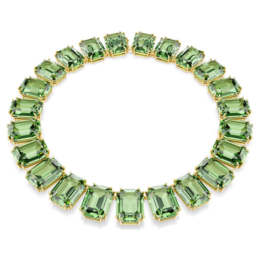 Discover your new wardrobe essential with this distinctive necklace, designed with a row of green Swarovski ReCreated™ crystals, cradled in gold-tone plated prong settings. Finished with a hidden closure for a seamless effect, your everyday style will take on a new life once you add this necklace as a vivid finishing touch.