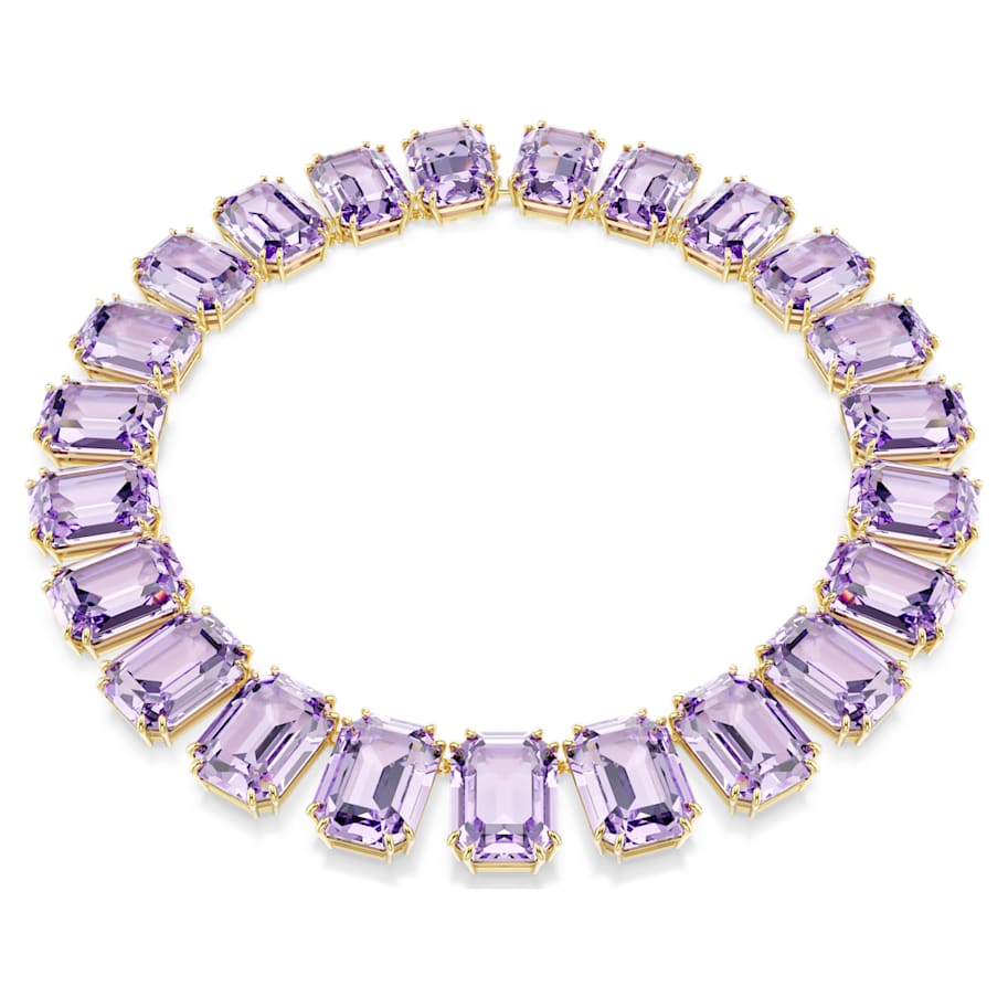 Take on a joyful glow in this pop of vivid Millenia color. The all-round necklace is rhodium plated and brought to life by an energizing array of octagon-cut crystals in a purple shade. At the back, a new closure in cobalt chrome provides both adjustability and style. For days when you just feel like shining, this necklace is the answer every time.