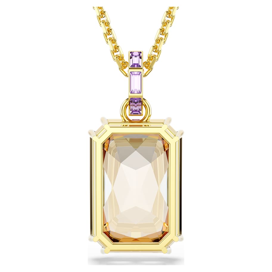 This glowing Millenia pendant is a creation of pure warmth and luxury. The central motif is crafted from a large caramel crystal in a double prong setting and connects to the gold-tone plated chain via an elegant bail adorned in channel-set purple crystals. Combine this pendant with a matching pair of earrings or a bangle to express an ultra-modern look.