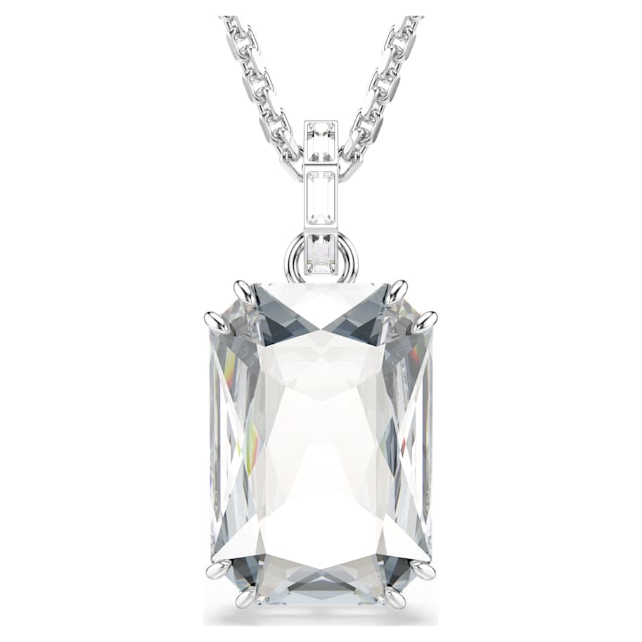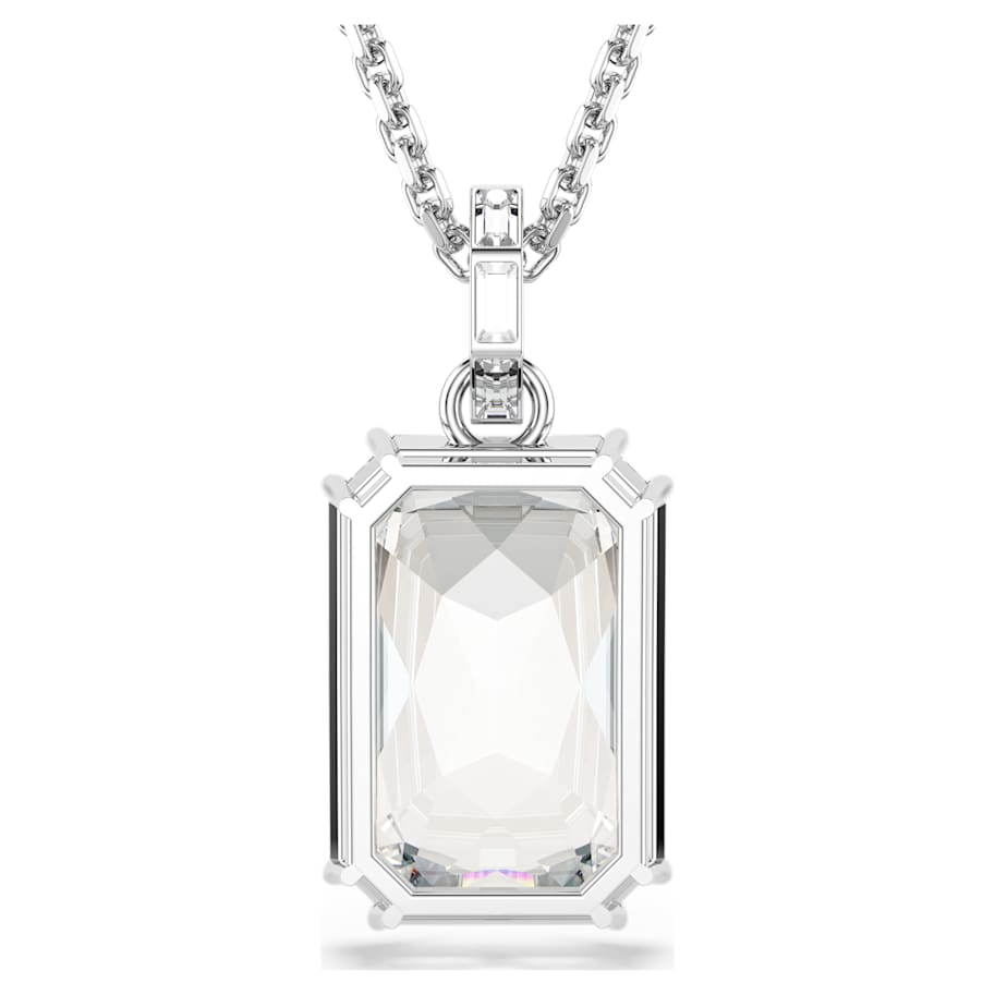 With emblematic Millenia style, this luminous pendant is a pure creation of light. The central motif is crafted from a large clear crystal in a double prong setting and connects to the rhodium plated chain via an elegant bail adorned in channel-set crystals. A mesmerizing choice to elevate your everyday glow.