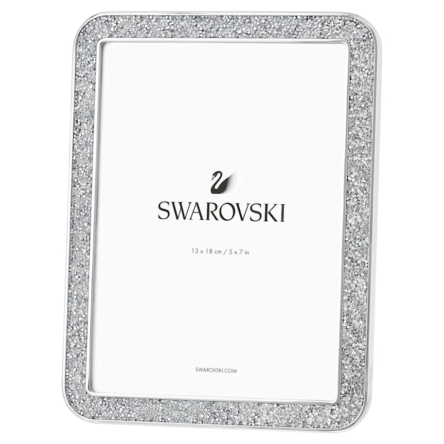 Inject some timeless elegance into your home with this stunning picture frame. Created by product designer Thomas Feichtner, it shines in silver-tone metal and glistens with approximately 3’300 clear and silvery colored crystals. It features a glass front and a velvety flocked back and stand, and fits a 13x18cm (5x7”) picture. A gorgeous gift for someone special. Decoration object. Not a toy. Not suitable for children under 15.
