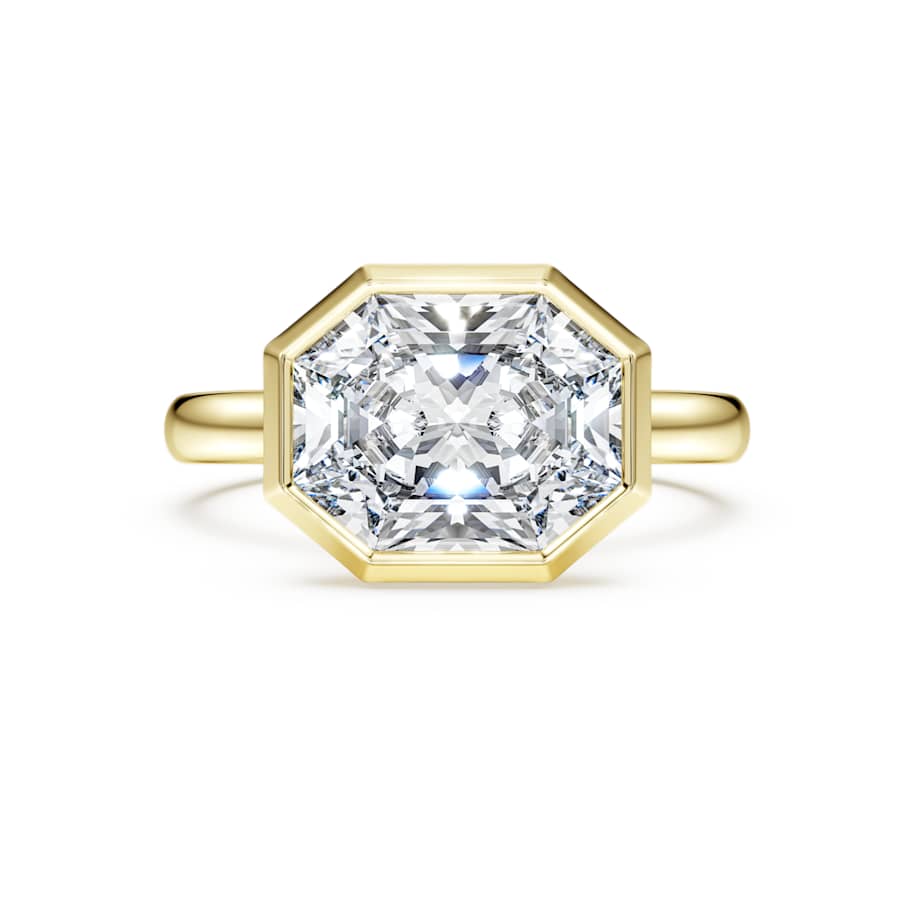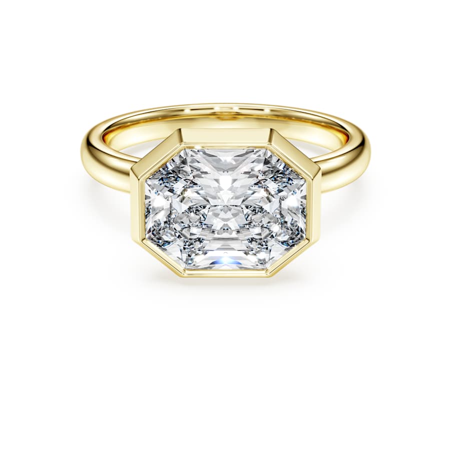 Conveying the signature octagon shape of Swarovski, this solitaire ring glows with sophistication. The 14K yellow gold band features a single laboratory grown diamond, totaling 3.00 carat, placed in a faceted bezel setting. Precision cut for maximum radiance, this ring is a wonderful choice for self-styling or an engagement. This jewelry is IGI (International Gemological Institute) certified and is part of the Octagon collection.