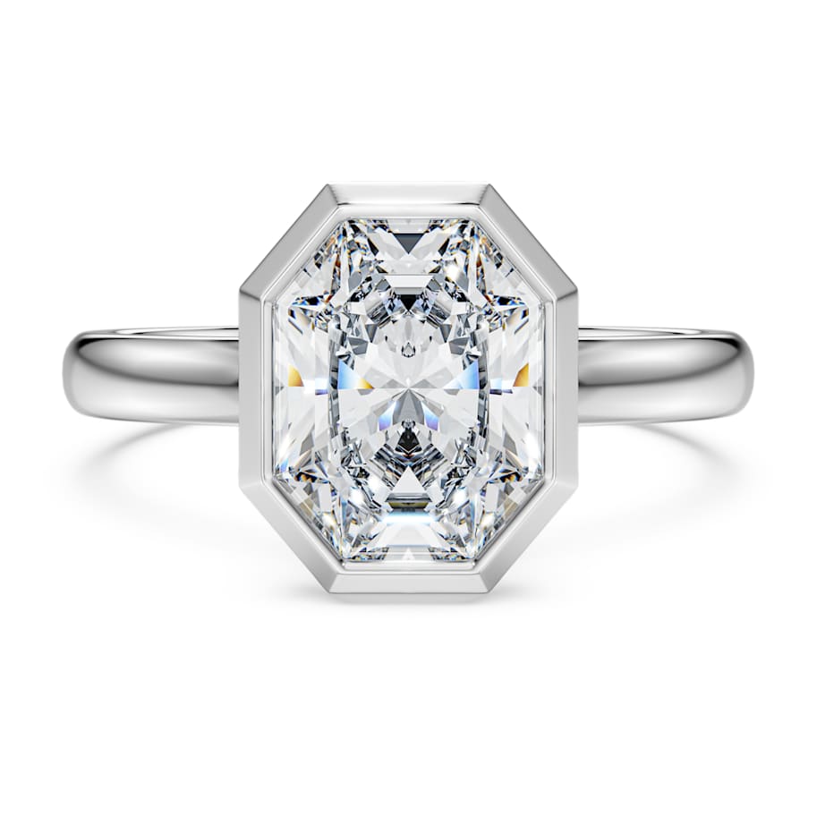 Conveying the signature octagon shape of Swarovski, this solitaire ring glows with sophistication. The 14K white gold band features a single laboratory grown diamond, totaling 2.0 carat, placed in a faceted bezel setting. Precision cut for maximum radiance, this ring is a wonderful choice for an engagement. This jewelry is IGI (International Gemological Institute) certified and is part of the Octagon collection.