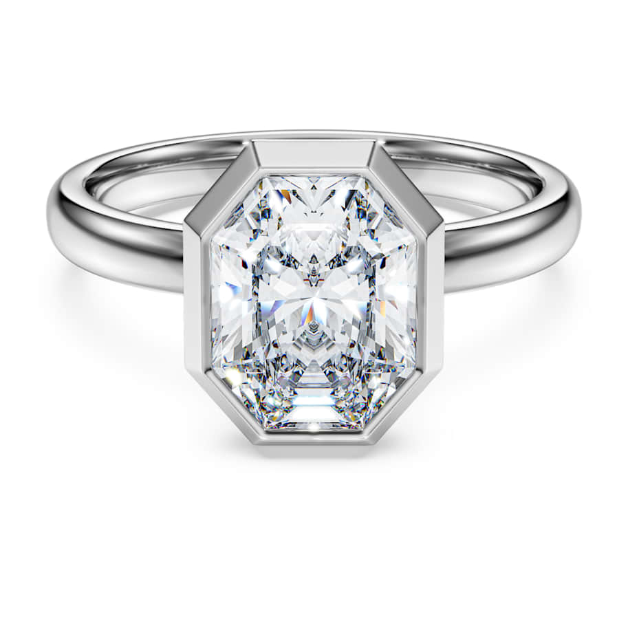 Conveying the signature octagon shape of Swarovski, this solitaire ring glows with sophistication. The 14K white gold band features a single laboratory grown diamond, totaling 2.0 carat, placed in a faceted bezel setting. Precision cut for maximum radiance, this ring is a wonderful choice for an engagement. This jewelry is IGI (International Gemological Institute) certified and is part of the Octagon collection.