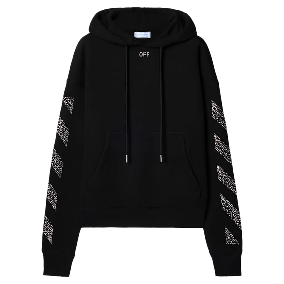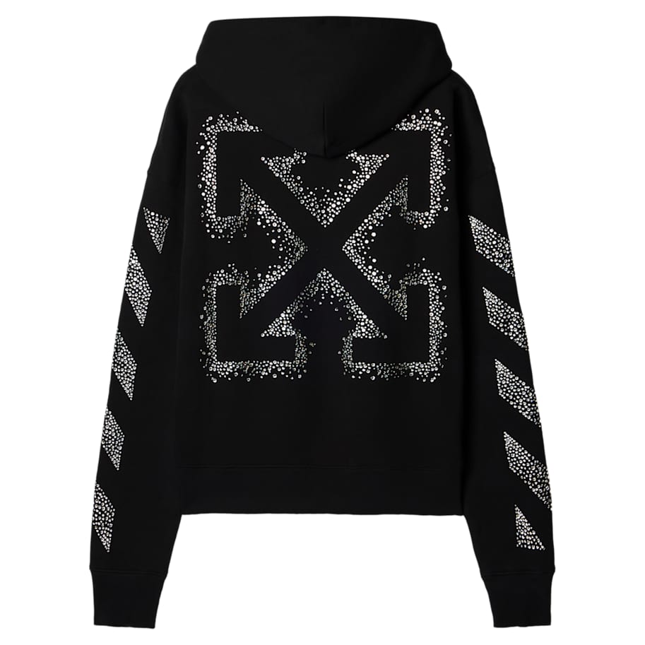 Creating a dynamic juxtaposition between ultimate luxury and the uniform of the street, Swarovski and Off-White™ combine their style expertise to create this one-of-a-kind hoodie. The design returns to the recognizable Off-White™ Arrow logo, which is presented in radiant Swarovski crystals of five different colors and sizes. Stripes of crystals on the sleeves also help to contrast with the jet-black fabric, producing a distinctive look for pure self-expression.