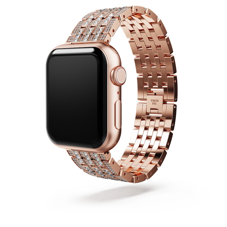 Keep time in style with this striking strap crafted for the Apple Watch®. The seven-row design features refined rose gold-tone plated links, fully embellished with clear crystals. Emphasize the look by styling this strap with your Swarovski jewelry. This strap suits Apple Watches® sized 40mm or 41mm, including Series 4 - 9 and SE. Apple Watch® is a trademark of Apple Inc. This product is delivered with a standard size bracelet and two additional links, enabling it to be made longer or shorter with the help of our in-store staff.