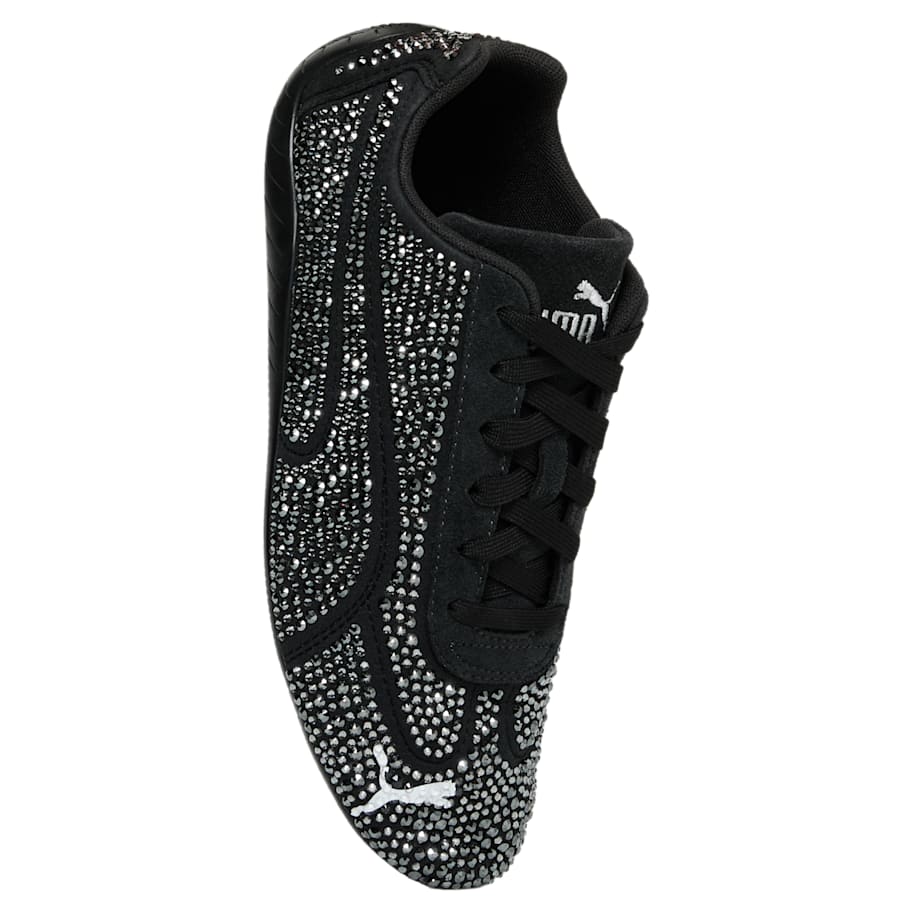 Heritage meets high fashion as Swarovski joins with PUMA to create this exclusive Speedcat footwear displaying radiant surface detail. Around 5,300 flatback crystals are featured within each pair, with different sizes, colors and effects that create a powerfully captivating look. An icon of racing culture and street style for decades, the Speedcat has become a sleek streetwear staple with a constantly evolving story. It now takes its next step in trendsetting style through the lens of Swarovski’s mastery of light.