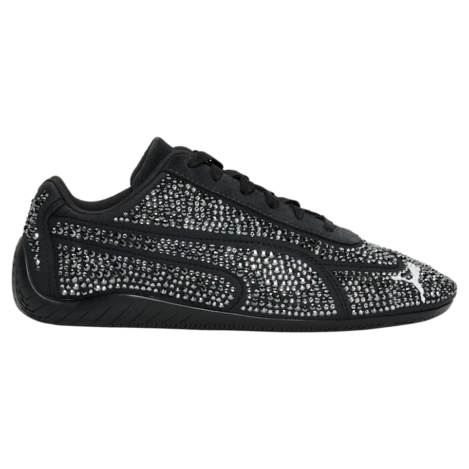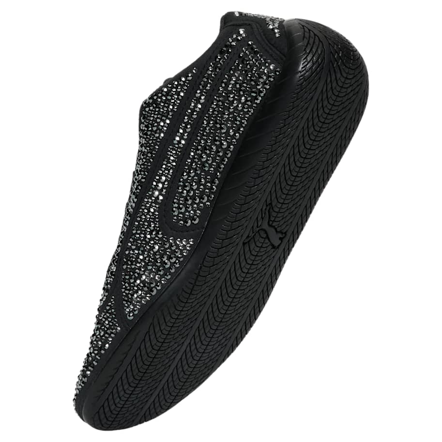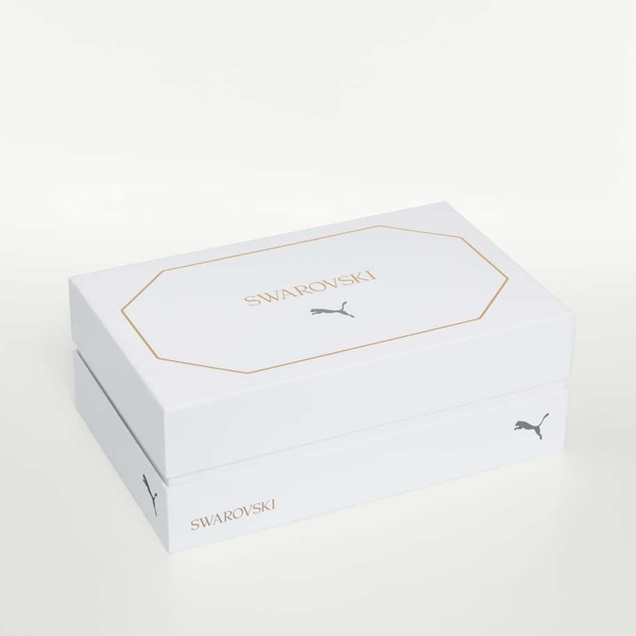 Heritage meets high fashion as Swarovski joins with PUMA to create this exclusive Speedcat footwear displaying radiant surface detail. Around 5,300 flatback crystals are featured within each pair, with different sizes, colors and effects that create a powerfully captivating look. An icon of racing culture and street style for decades, the Speedcat has become a sleek streetwear staple with a constantly evolving story. It now takes its next step in trendsetting style through the lens of Swarovski’s mastery of light.