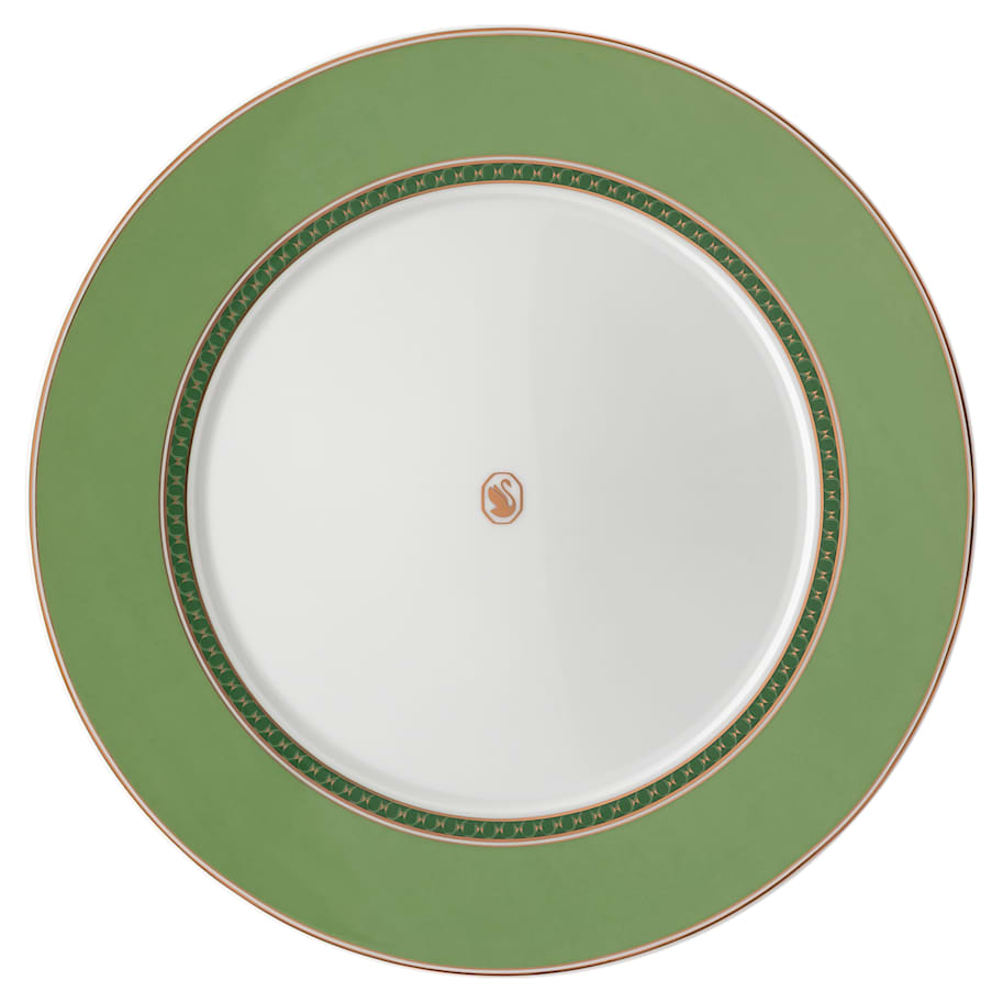 This porcelain dinner plate brings playful sophistication to the table. The geometric pattern in Swarovski's signature octagon is inspired by the Wiener Werkstätte art movement, while our chic swan logo sits at the center. Style it alongside the Signum collection's yellow, pink, and blue designs for an eclectic tablescape. This plate is part of an exclusive collaboration with porcelain brand Rosenthal. It is dishwasher safe, however usage in the microwave is not recommended.