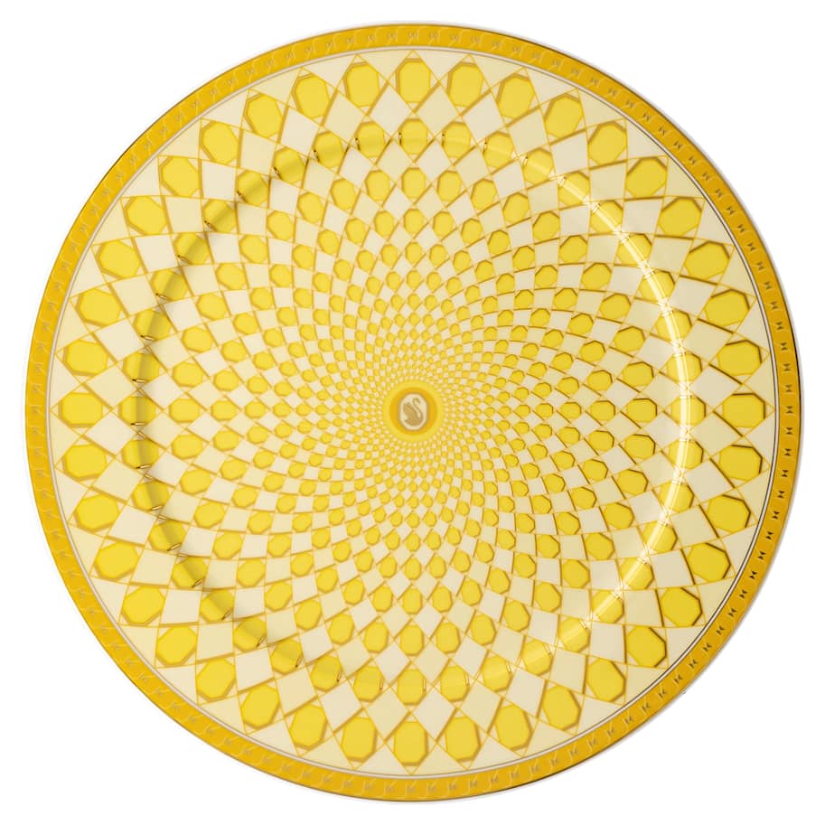 This bold and playful service plate brings pleasure to the art of the tablescape. The bright yellow motif is inspired by Swarovski's signature octagon and the iconic swan logo sits at the center in gold tone. Style it with other pieces in the Signum collection for a colorful feast. This plate is part of an exclusive collaboration with porcelain brand Rosenthal. It is dishwasher safe, however usage in the microwave is not recommended.