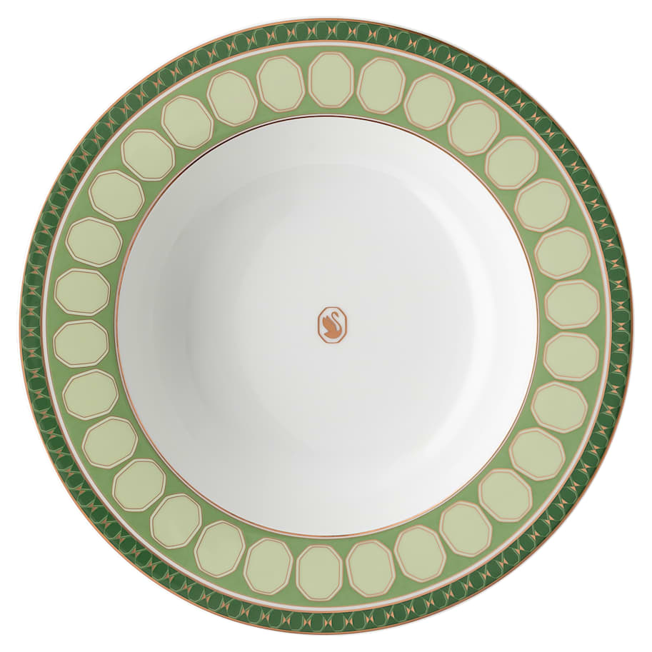 Make your first course one to remember with this stylish soup plate. Crafted from porcelain, it features a geometric pattern in Swarovski's signature octagon and our chic swan logo at the center. This soup plate is part of an exclusive collaboration with porcelain brand Rosenthal. It is dishwasher safe, however usage in the microwave is not recommended.