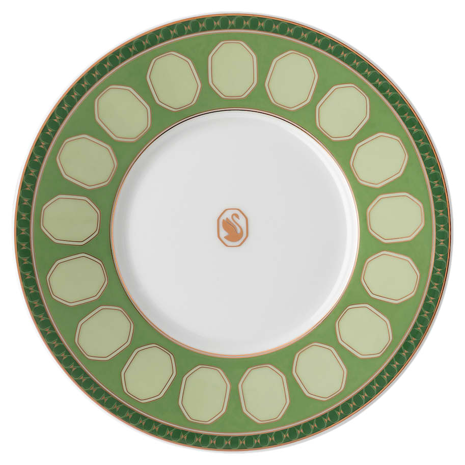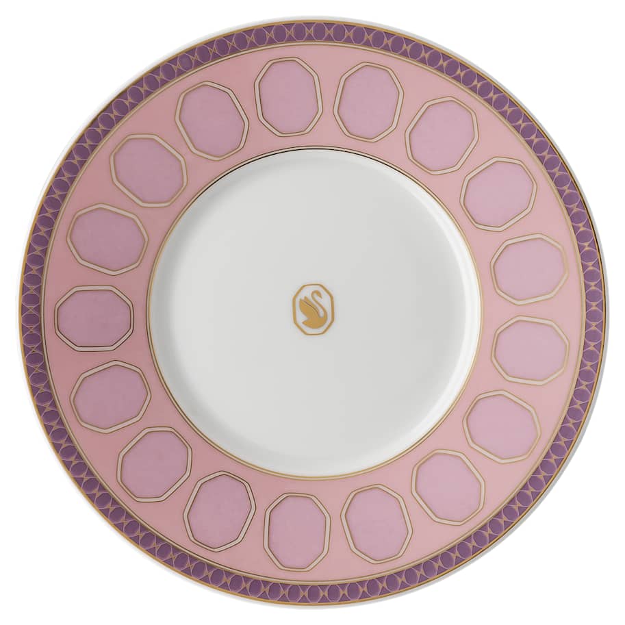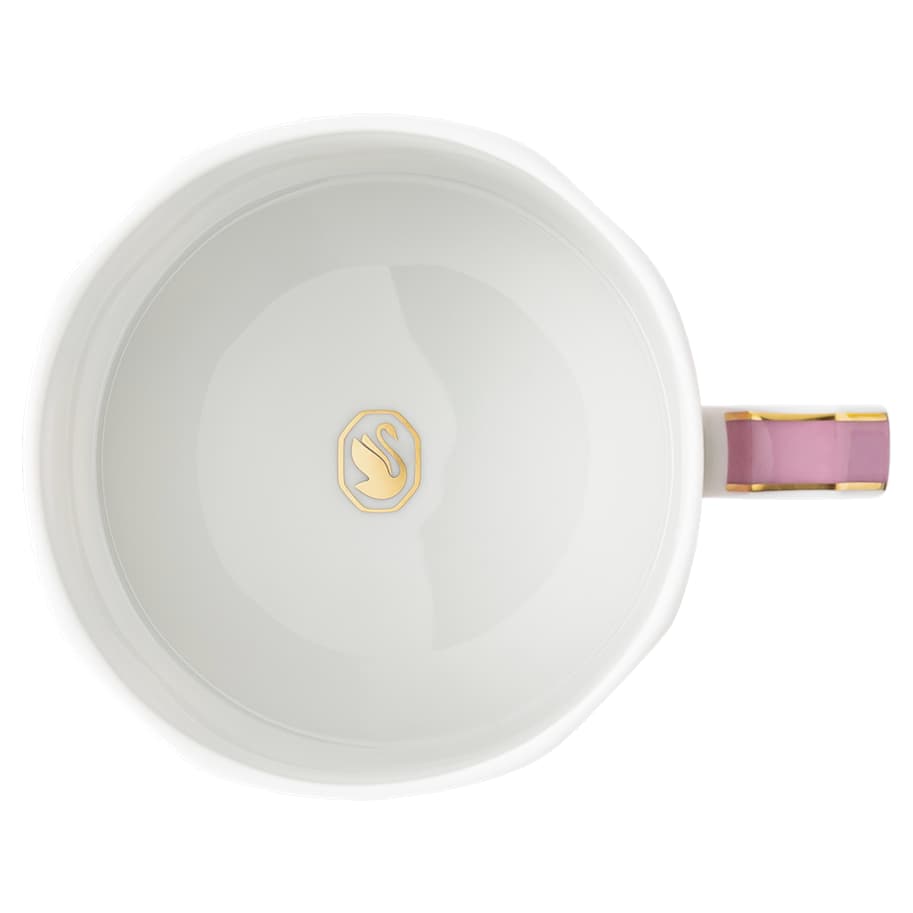 Bring playful sophistication to teatime with this colorful set of cups and saucers in green and pink. The vibrant geometric motifs feature Swarovski's signature octagon, complemented by an artful octagonal handle and the iconic swan logo in gold tone. Style yours with the matching teapot in your favorite color. This teacup set is part of an exclusive collaboration with porcelain brand Rosenthal. It is dishwasher safe, however usage in the microwave is not recommended.
