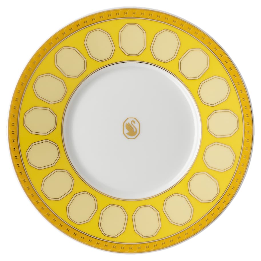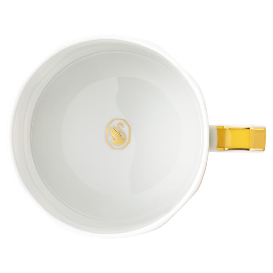 Bring playful sophistication to teatime with this elegant yellow cup and saucer set from the Signum family. The bright geometric motif features Swarovski’s signature octagon, complemented by an artful octagonal handle and our iconic swan logo in golden tone. Style yours with the matching teapot in the same color. This teacup set is part of a collaboration with porcelain brand Rosenthal. It is dishwasher safe.