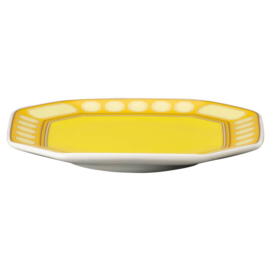 Enhance your everyday with this Signum vide poche. Ideal for holding small items such as keys and coins as soon as you step through the front door, this practical yet polished design is crafted from porcelain and features a yellow geometric pattern inspired by Swarovski’s signature octagon. This vide poche was created in partnership with porcelain brand Rosenthal. Do not use in the dishwasher or microwave.