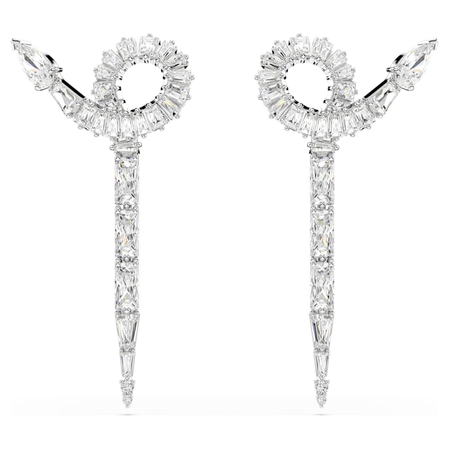 Embrace the mystery and vitality of the snake with these stunning pierced earrings. Each piece is rhodium plated and features a variety of clear Swarovski Zirconia in different shapes. Hanging low and then coiling up into an energetic form, these masterful earrings would make an inspiring Year of the Snake gift, and perfectly symbolize the unique beauty of the unknown.