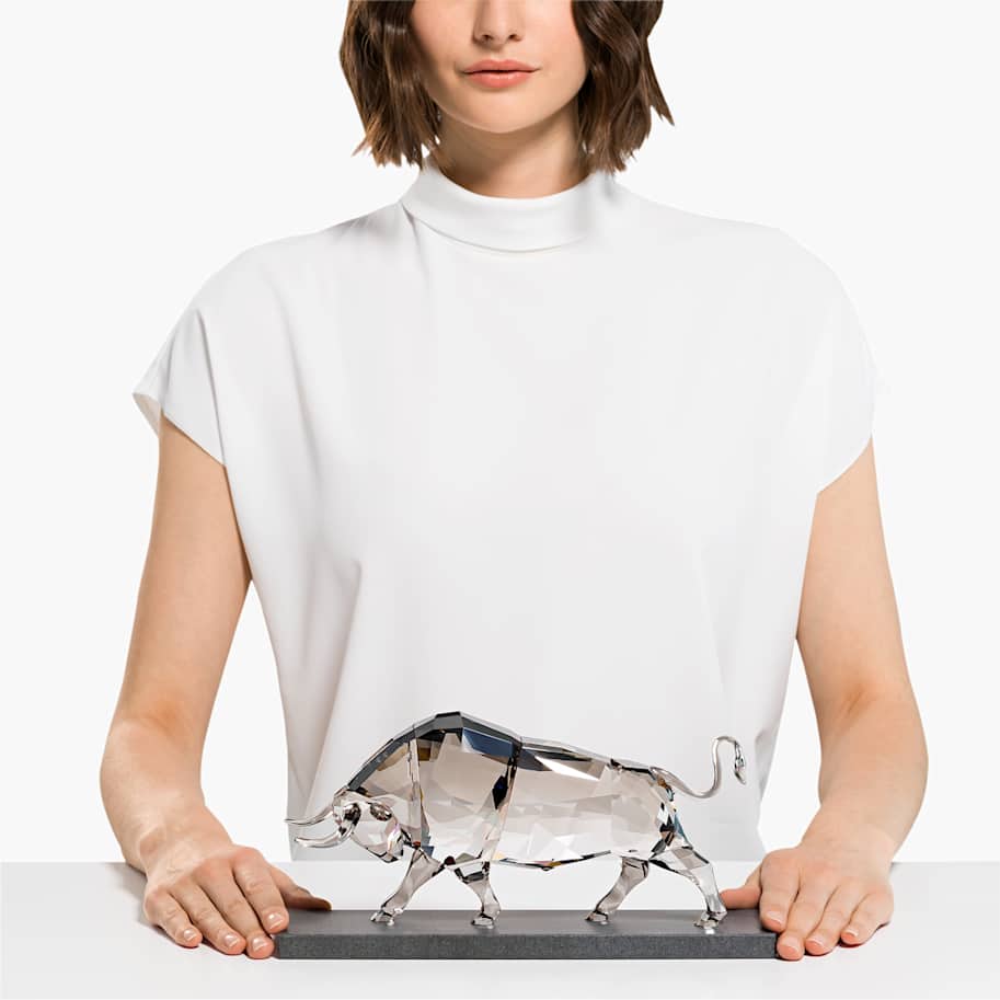 A commanding presence in any setting, this bull figurine by Swarovski radiates strength and confidence. A masterpiece of design and evocative craftsmanship, the crystal figurine features 890 expertly crafted facets. These emphasize the posture of calm but unstoppable force which the bull represents. Standing on black granite with horns lowered for the charge, the bull is a perfect statement piece for the discerning go-getter. Ideal as a gift or an addition to decorative collections. Decoration object. Not a toy. Not suitable for children under 15.