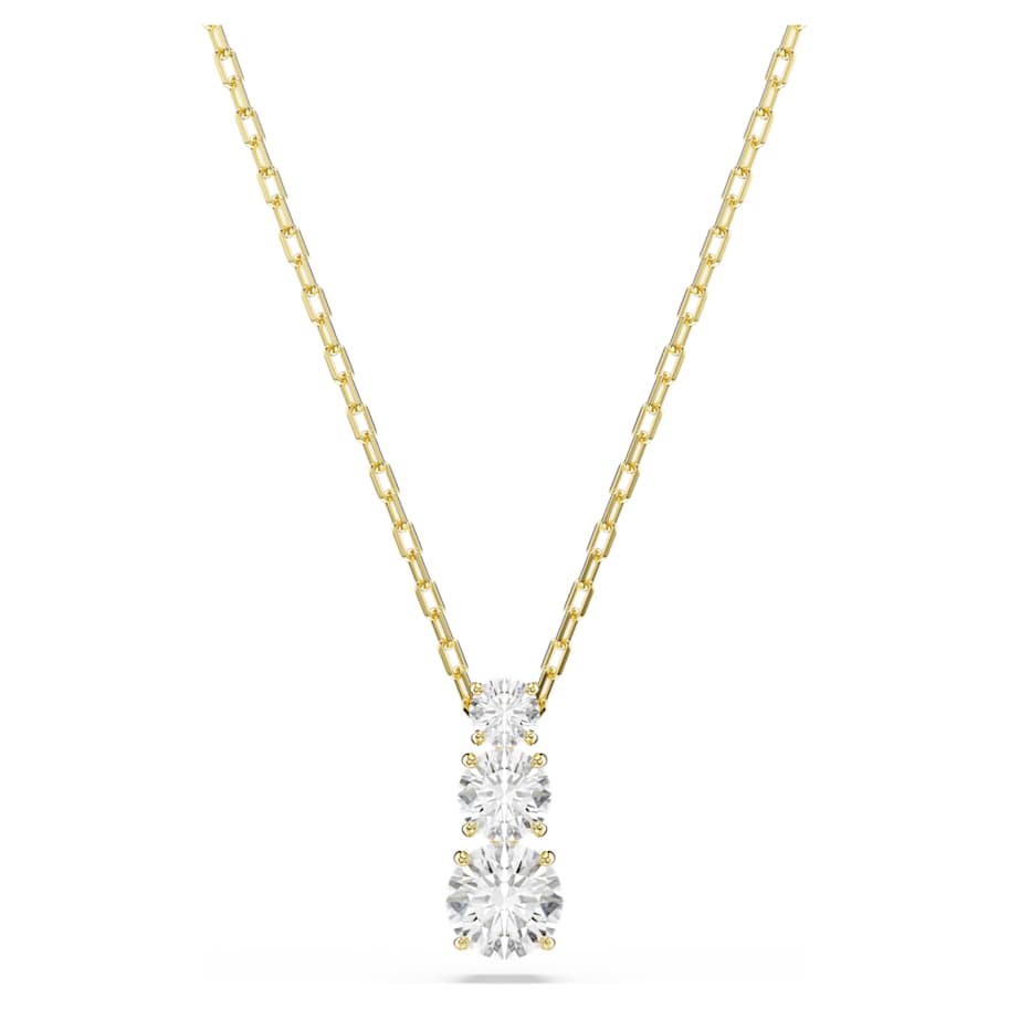 Inspired by the concept of eternal love, this romantic pendant is timelessly elegant. The trio of clear Swarovski Zirconia are majestically suspended from a gold-tone plated chain, creating a piece of jewelry that is full of emotion. It’s the perfect gift for a loved one, and can be worn with a matching pair of pierced earrings or a ring.