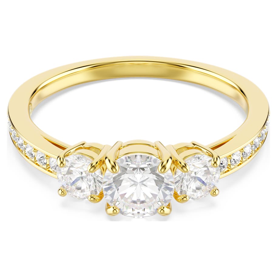 Crafted for every occasion, the Stilla family evokes pure elegance. This classic ring takes radiance to the next level with clear crystals along the shank and a trio of precision-cut Swarovski Zirconia on a shining gold-tone finish. A beautiful piece of jewelry for everyday that can be easily matched with other pieces from the same family.