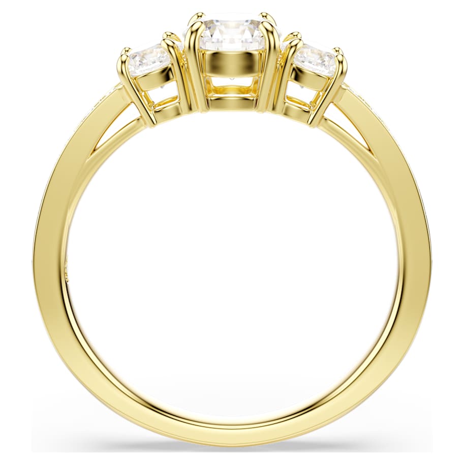 Crafted for every occasion, the Stilla family evokes pure elegance. This classic ring takes radiance to the next level with clear crystals along the shank and a trio of precision-cut Swarovski Zirconia on a shining gold-tone finish. A beautiful piece of jewelry for everyday that can be easily matched with other pieces from the same family.