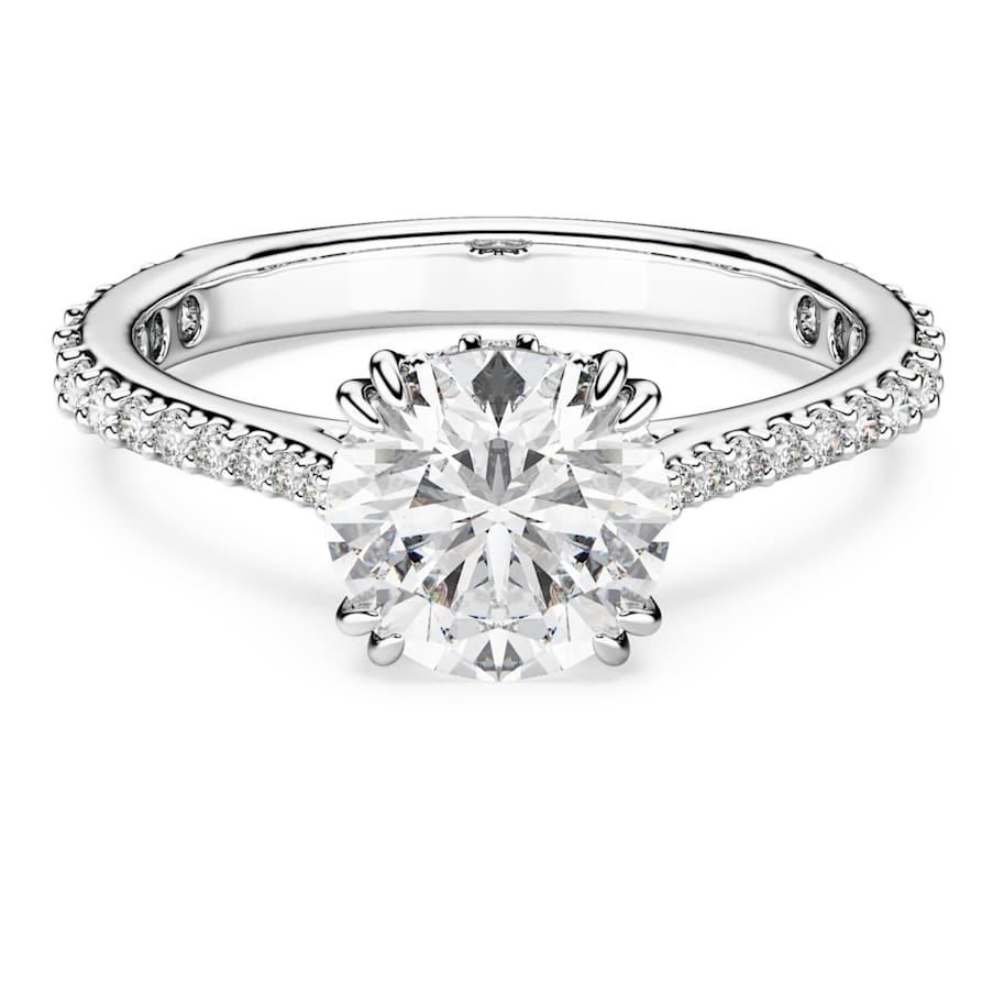 Proving there is power in simplicity, this Stilla ring is a wardrobe essential. Expertly crafted, the scene-stealing princess-cut center stone is enhanced with elegant pavé on the gallery and along the rhodium plated band. Wear it solo and shine bright.