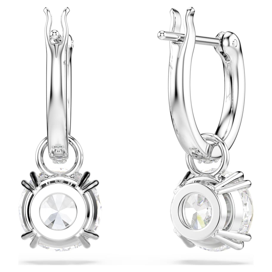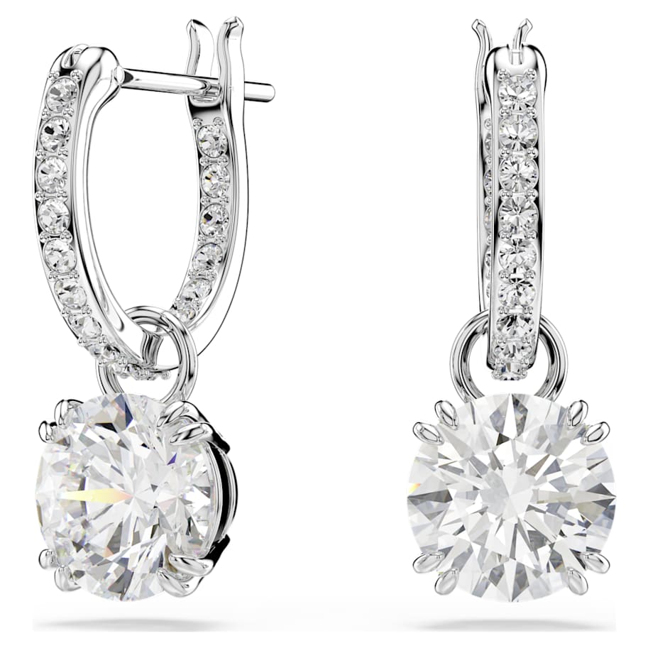 These mesmerizing drop earrings from the Stilla family have wear-forever power. Striking the balance between dramatic and refined, dazzling center stones are enhanced with pavé on the gallery and hoops, which are set with rhodium plating. Wear them with your hair tucked to really let them shine.