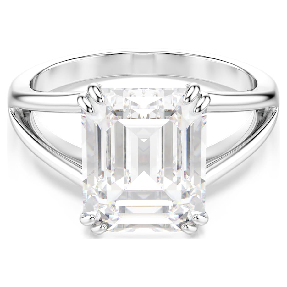 Dial up the glamour with this radiant cocktail ring. The silver-tone finish design features a split band with an octagon-cut Swarovski Zirconia at the center, held in place with a refined double prong setting. A showstopping piece that shimmers brilliantly.