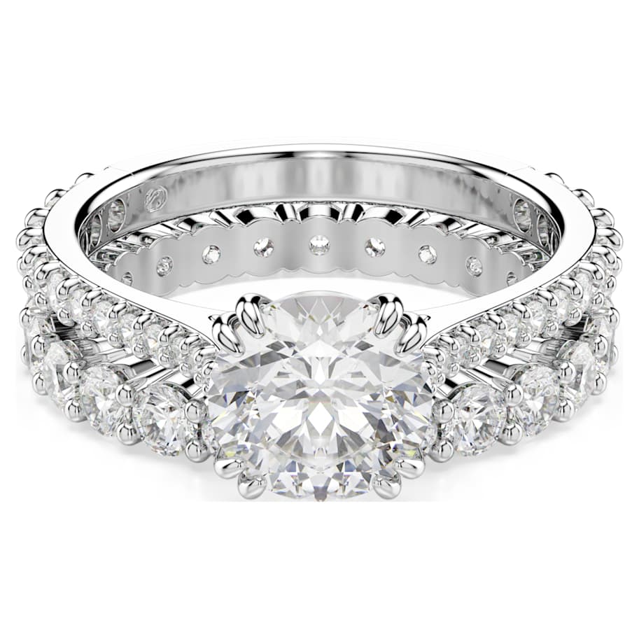 Elevate everyday looks with this rhodium-plated ring set from the Stilla family. Each piece is inspired by fine jewelry techniques: one ring dazzles with a clear princess-cut stone and pavé embellishment on the gallery, while the other features a row of shimmering stones around the band. A beautiful gift idea for a loved one – or yourself.