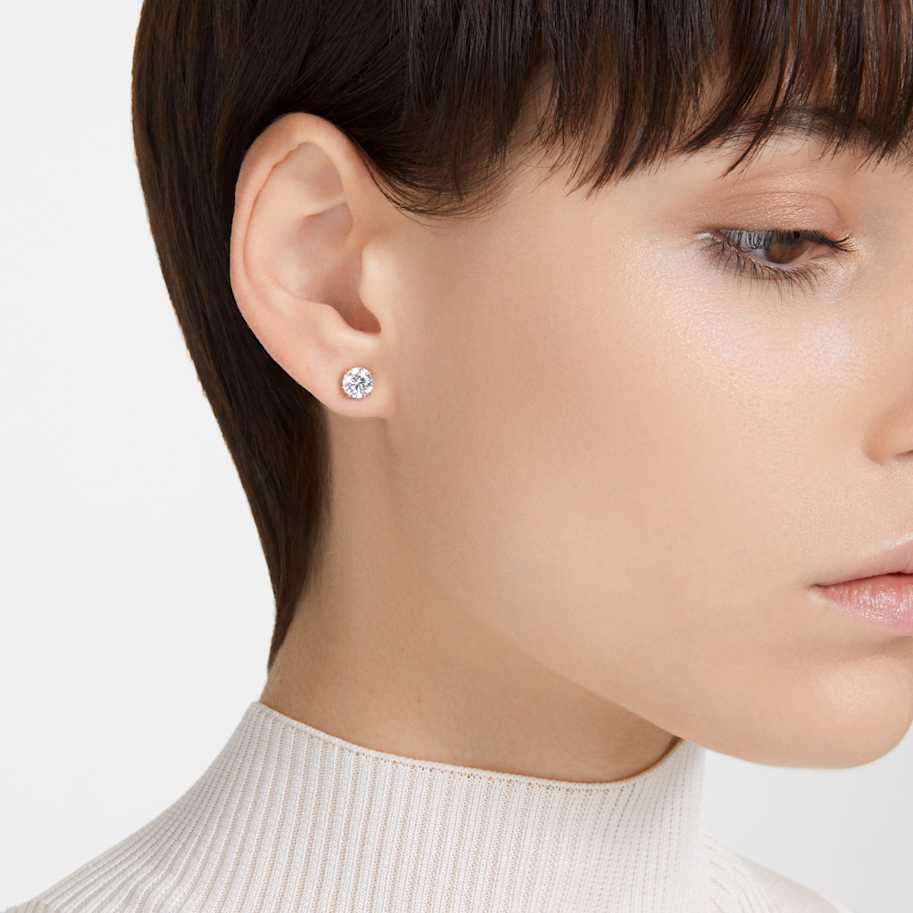 These elegant earrings from the Stilla family are a wear-forever staple. Featuring dazzling stones in a double-prong setting, each one is illuminated with eye-catching pavé on the gallery and finished with rose gold-tone plating. Wear them solo or stacked with other earrings for added stardust.