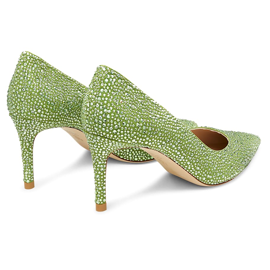 This limited-edition STUART POWER SHINE pump, created in collaboration with the Swarovski Creators Lab, delivers a high-shine, high-glam take on the new icon, the STUART POWER 75 pump. Meticulously crafted by expert artisans in Spain, each pair is adorned with over 6,000 green Swarovski pavé crystals. The silhouette features a modernized construction for maximum style and comfort, including a reworked 75mm stiletto heel set on a subtle angle for extra support. Make every step striking in this dazzling pump.