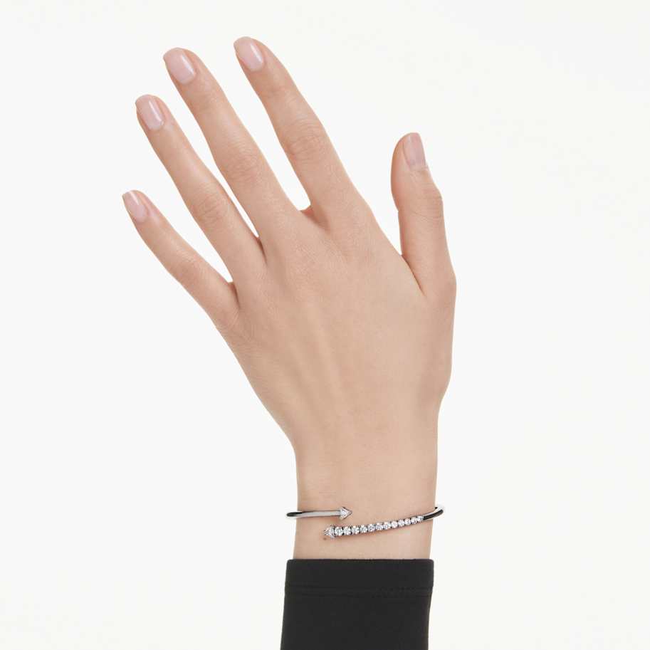 Let your alternative side shine with this impactful Sublima bangle. The ruthenium plated band is open-ended and spirals around the wrist with a variety of clear Swarovski Zirconia in prong settings. The spiky tips add a contemporary finish and match perfectly with other jewelry pieces from the same expressive family.