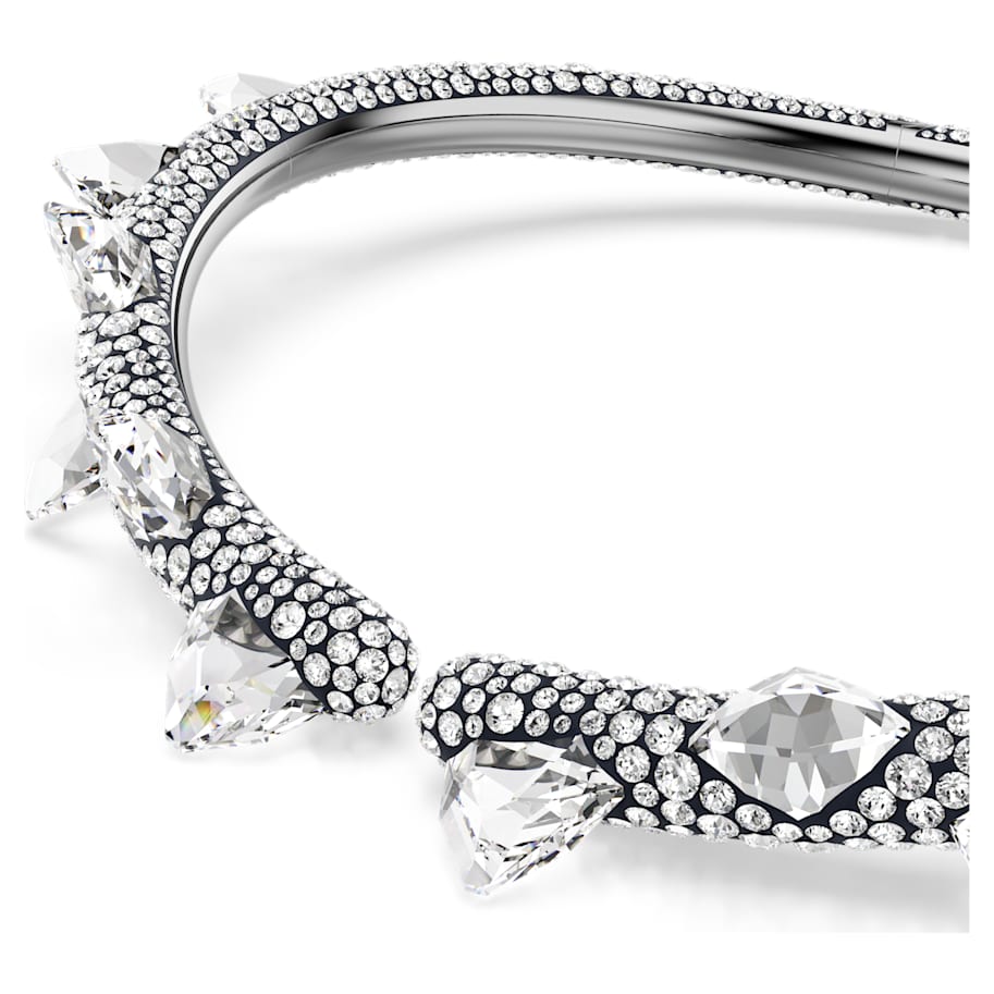 This Sublima choker is a true statement piece for bold personal expression. Made with Swarovski’s finest savoir-faire, the edgy design is ruthenium plated and is adorned with shimmering crystals in the Pointiage® style and spike-shaped crystals that glisten in the light. A hinge mechanism at the back makes the choker easy to wear and remove. Combine it with the matching Sublima earrings for a modern alternative look.
