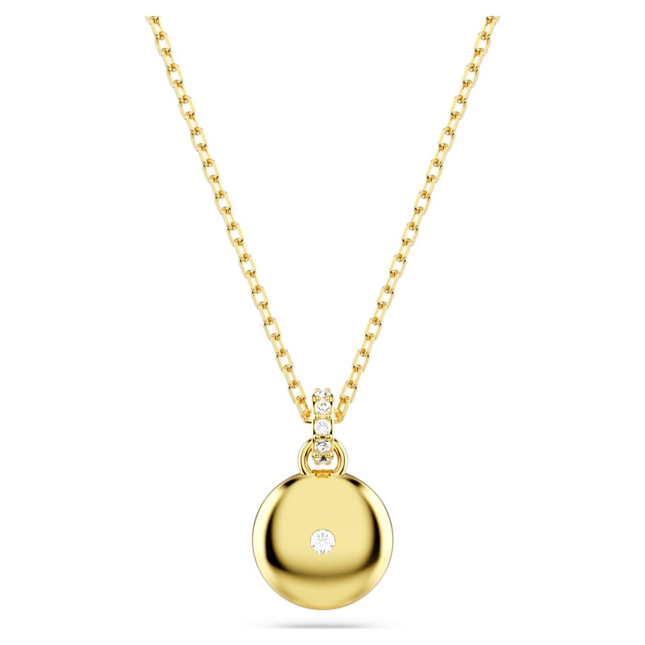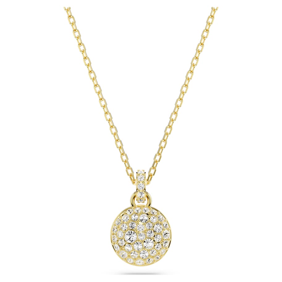 This galaxy-inspired pendant will bring dazzling impact to any style. The gold-tone plated design is worn on a delicate chain with a lobster closure and features a domed meteor motif that is beautifully adorned with a snow pavé of clear round crystals in different sizes. Wear it as a wondrous piece of light-catching joy.