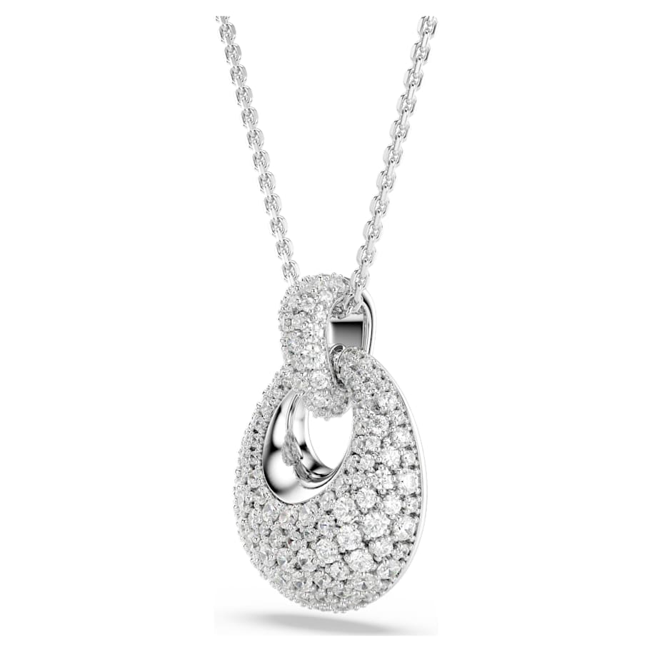 This shimmering pendant is the ideal choice for glamorous occasions. The central motif is suspended from a long rhodium plated chain and features a stunning decoration of clear Swarovski Zirconia, set in place using the chattonage technique. Combine it with a pair of wondrous Sublima earrings or a ring to infuse your entire look with light.