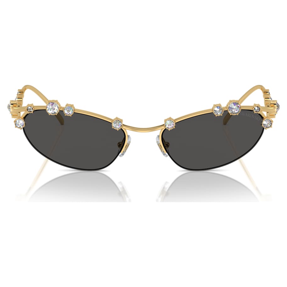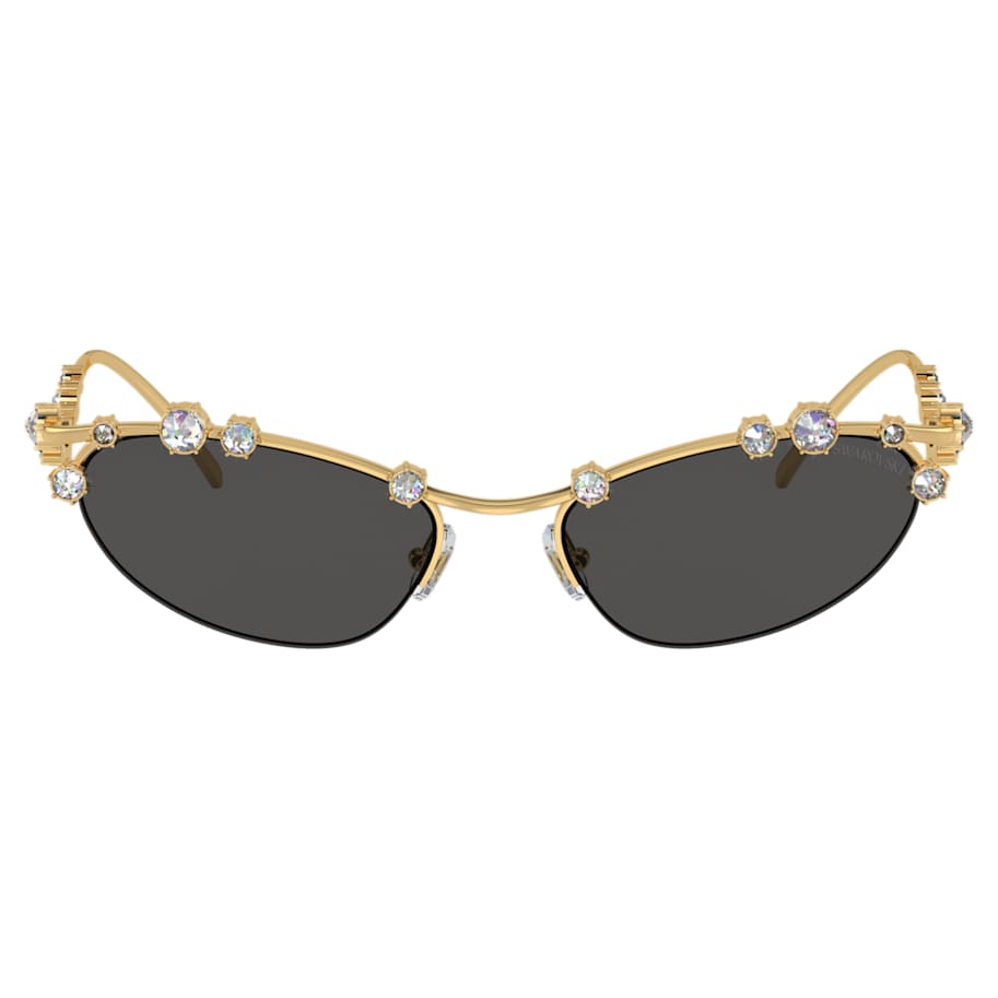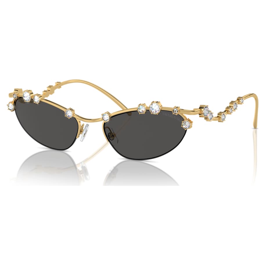 Ignite your style with stardust thanks to these dazzling sunglasses inspired by the Constella family. The gold-tone metal frames form a cat-eye shape with a dramatic curved silhouette that is further enriched by prong-set clear crystals in a variety of sizes. For added modernity, the design is completed with floating lenses in dark gray. A perfect choice for light-catching extravagance throughout the day.